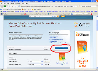 Jika pack ini sudah terinstal, maka tidak ada masalah untuk membuka file Ms Word 2007 (*.docx) walau komputer kita menggunakan Ms Office 2003. Bukalah file docx tersebut di Ms Word 2003 seperti anda biasanya membuka file doc. Pack ini tidak hanya untuk file word Ms Office 2007 saja, tetapi juga untuk file Excel dan PowerPointnya. Untuk download silahkan pilih dari link dibawah ini (file size = 37 Mb)